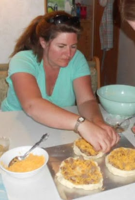 Now, I am not endorsing this, but one of my friends told me she made these with refrigerated biscuit dough and they worked out very well. Another said she made hers with Bisquick dough and they also worked out well, sigh.